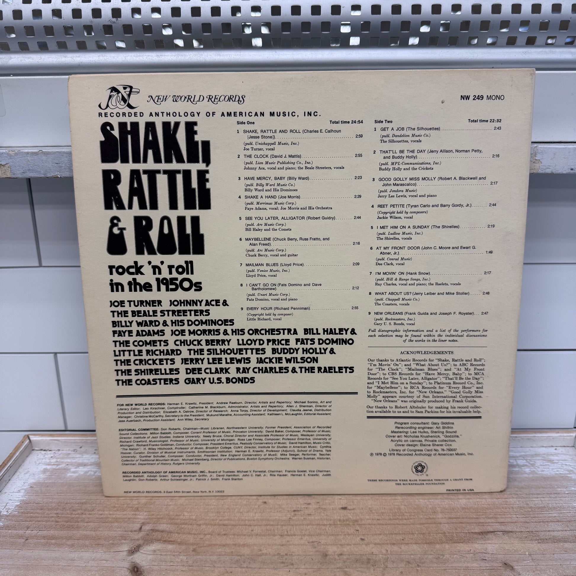 Crank up the nostalgia with Shake, Rattle & Roll: Rock 'n' Roll in the 1950s, a 1978 pressing from New World Records (NW 249) that celebrates the explosive birth of rock and roll. This vintage vinyl record captures the raw energy, rhythm, and cultural shift that defined 1950s American music, spotlighting the driving backbeats, blues roots, and early rock influences that reshaped popular sound forever. Released by the respected archival label New World Records, known for historically significant recordings and high-quality pressings, this LP offers both rich audio fidelity and educational depth—making it a standout addition for collectors of classic rock vinyl, 1950s music enthusiasts, and fans of retro record albums. Housed in its original 13" x 13" sleeve, this 1978 rock and roll compilation embodies the spirit of jukebox hits, sock hops, and the golden era of American pop culture, making it a compelling piece for any serious vinyl record collection or vintage music display.