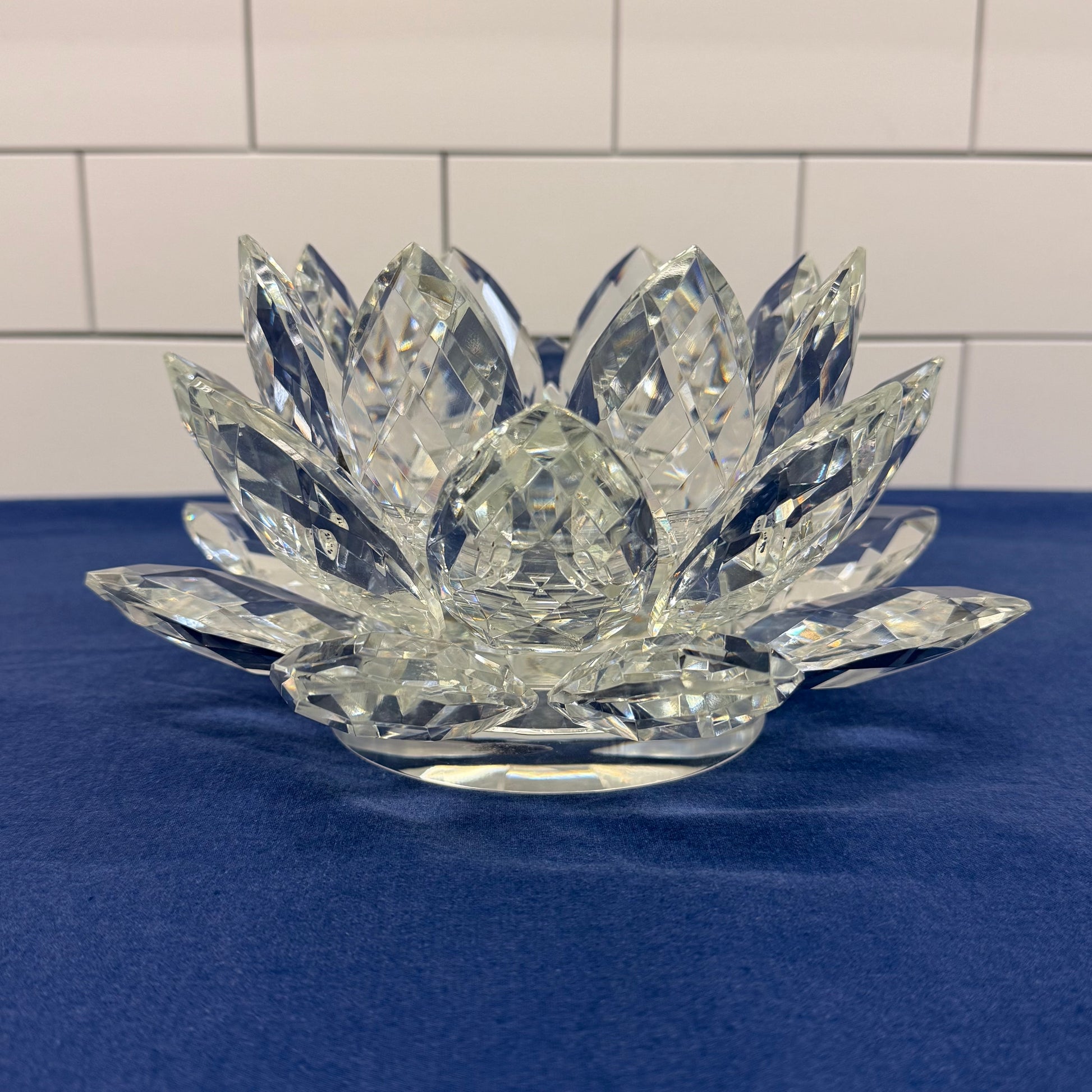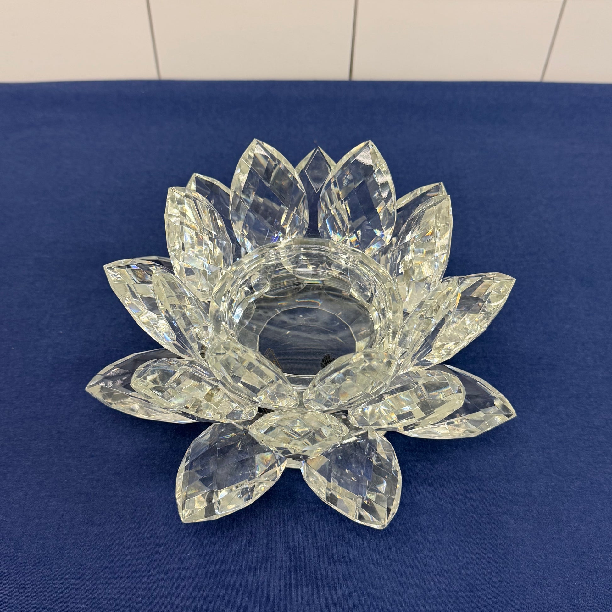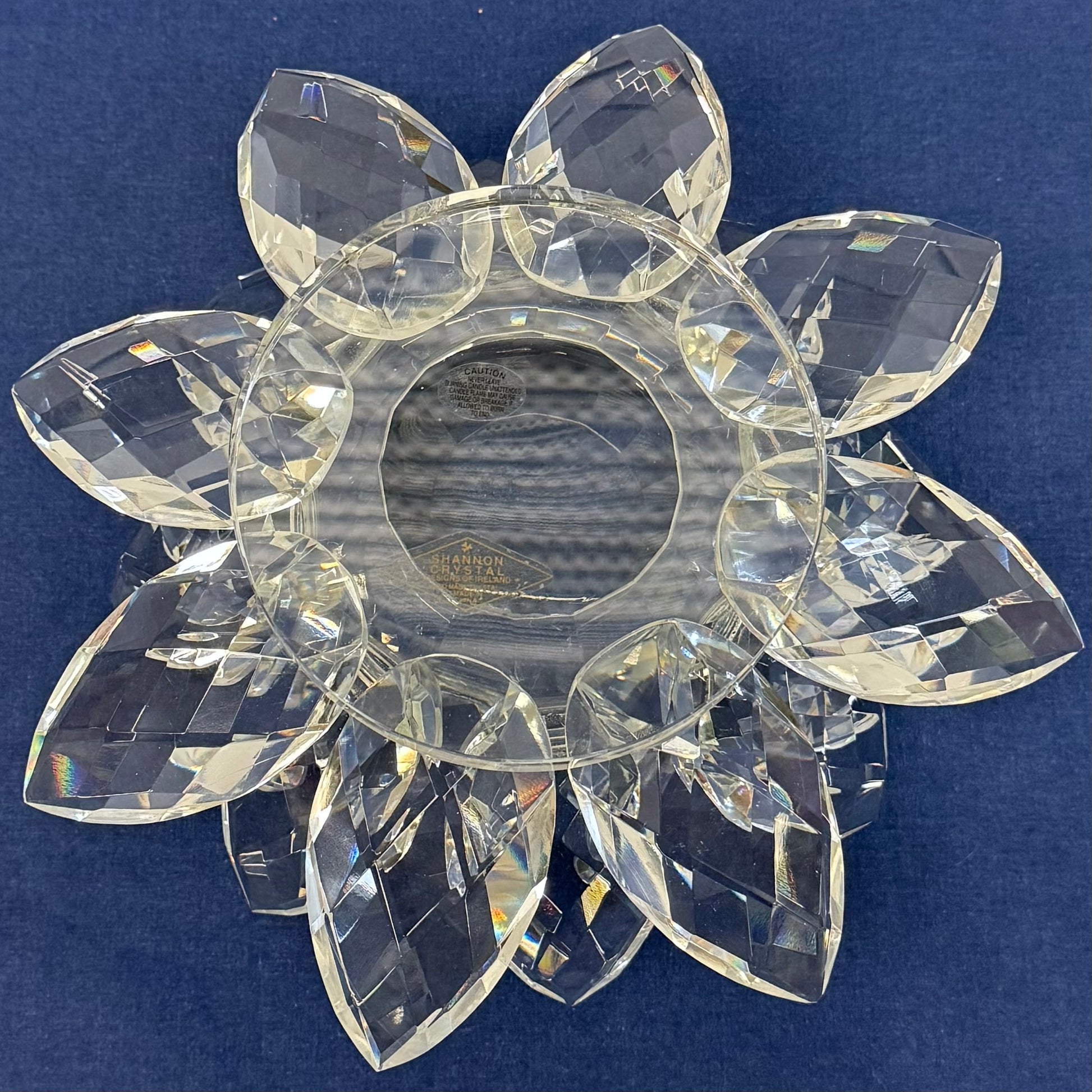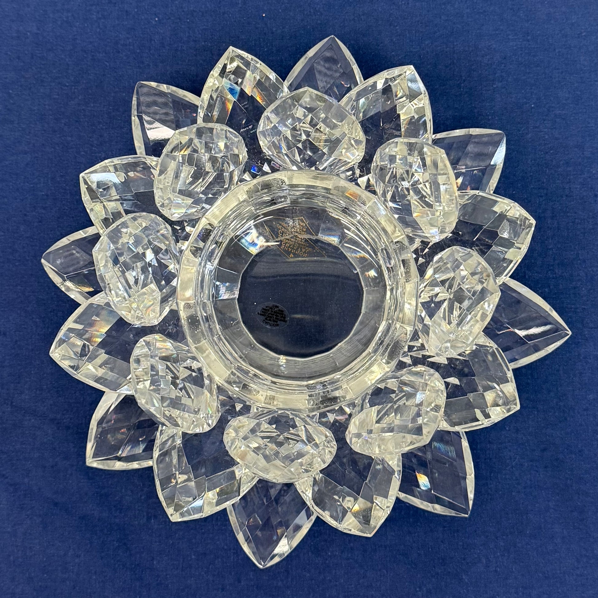 Keywords: Godinger crystal, lotus candle holder, pillar candle holder, vintage crystal decor, Shannon Godinger, lotus design, crystal centerpiece, boxed crystal, collectible candle holder, elegant home decor