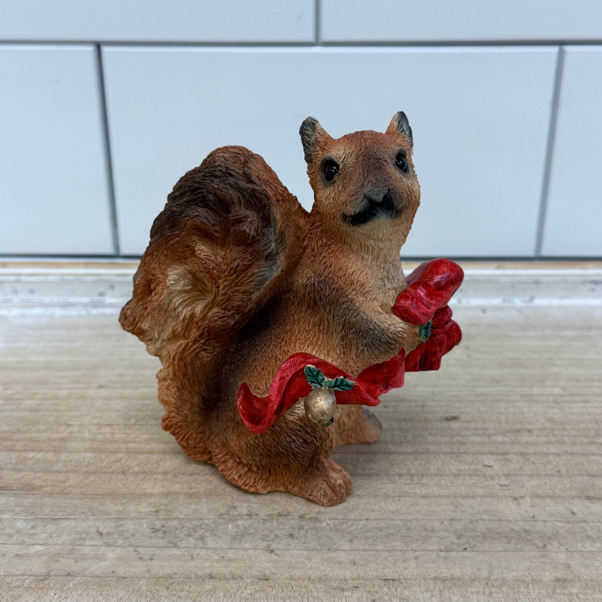 Keywords: Stone Critters, holiday squirrel, Christmas figurine, vintage collectible, granite resin, festive decor, 1989 ornament, boxed figurine, seasonal display, whimsical Christmas