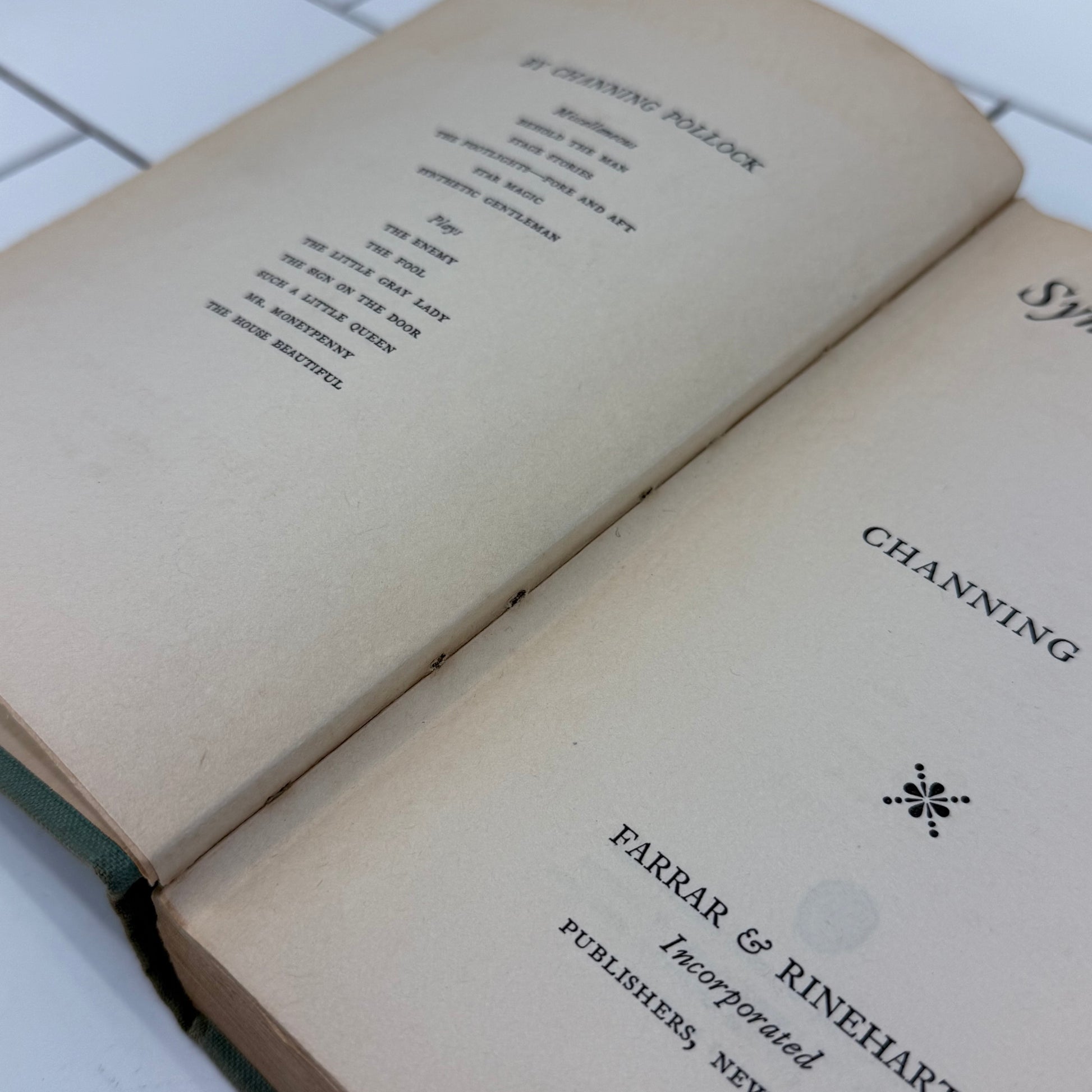 Elegant, satirical, and sharply observant, The Synthetic Gentleman by Channing Pollock offers a witty glimpse into early 20th-century social commentary. Published in 1934 during the height of the interwar period, this work reflects Pollock’s reputation as a playwright and critic known for examining manners, morality, and modern identity with clever prose and refined humor. Bound in classic period styling and sized at a comfortable 8” x 6”, the book embodies the understated design aesthetic typical of 1930s publishing. In good vintage condition with minor wear consistent with age and use, it remains a compelling collectible for literary enthusiasts, vintage book collectors, and those drawn to Depression-era social satire.