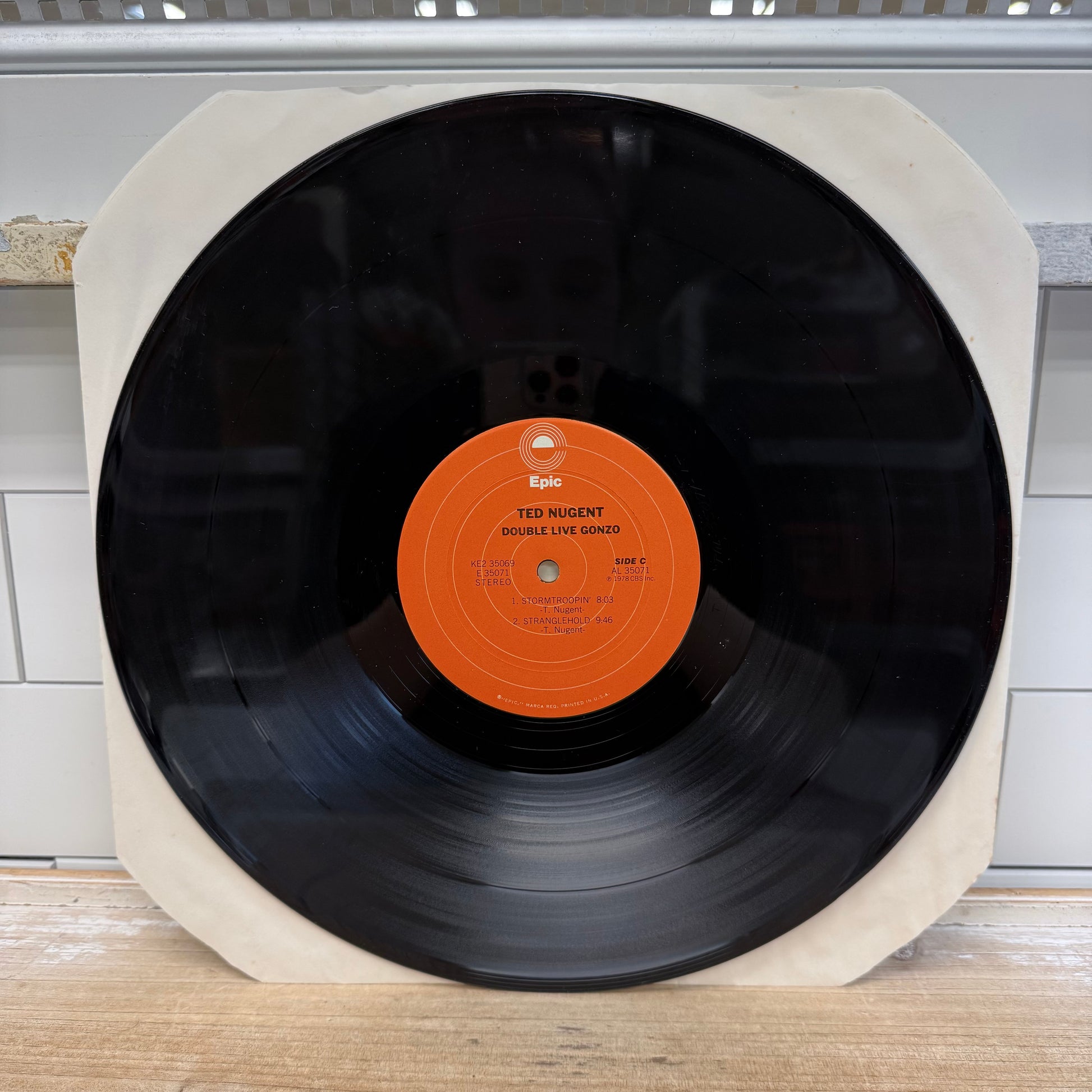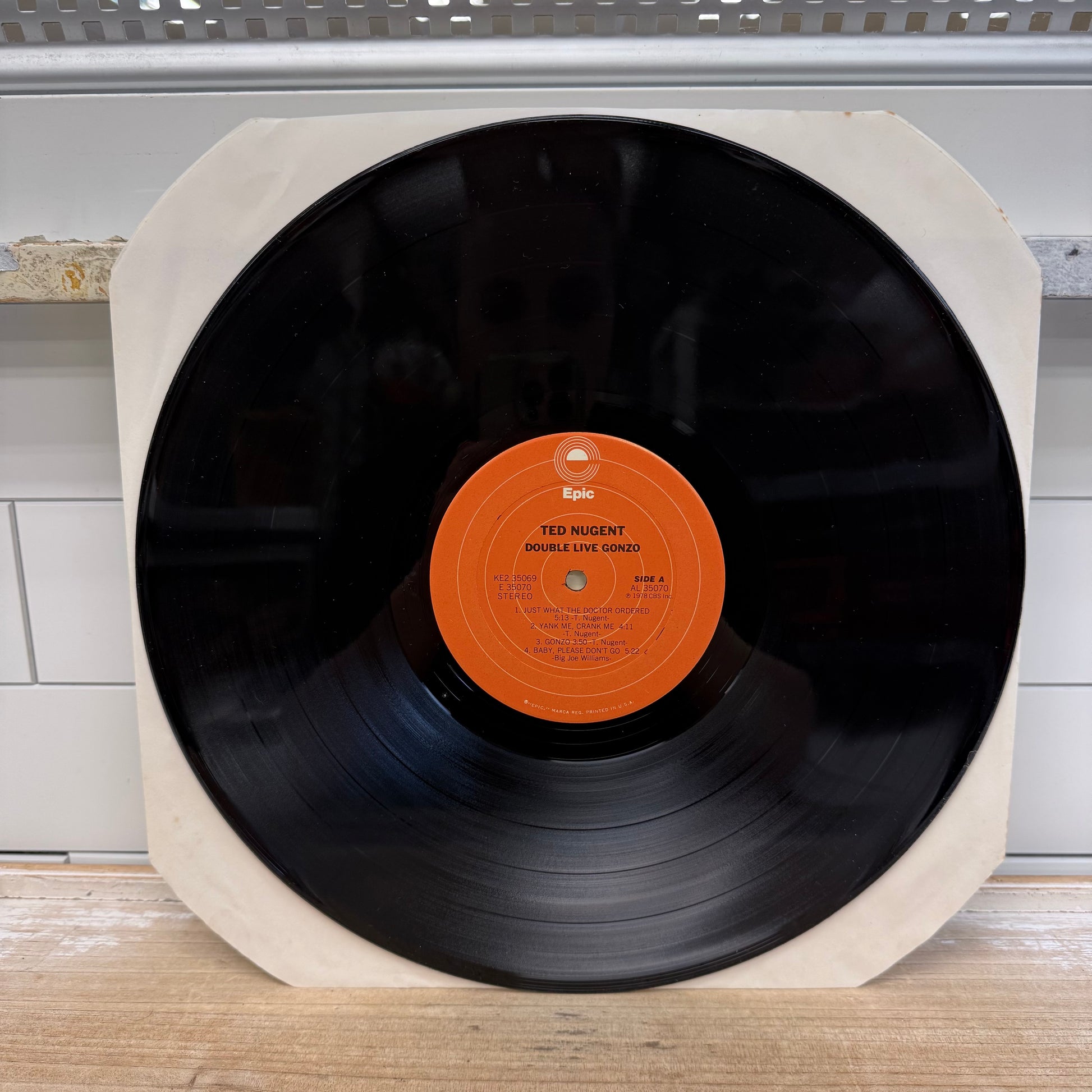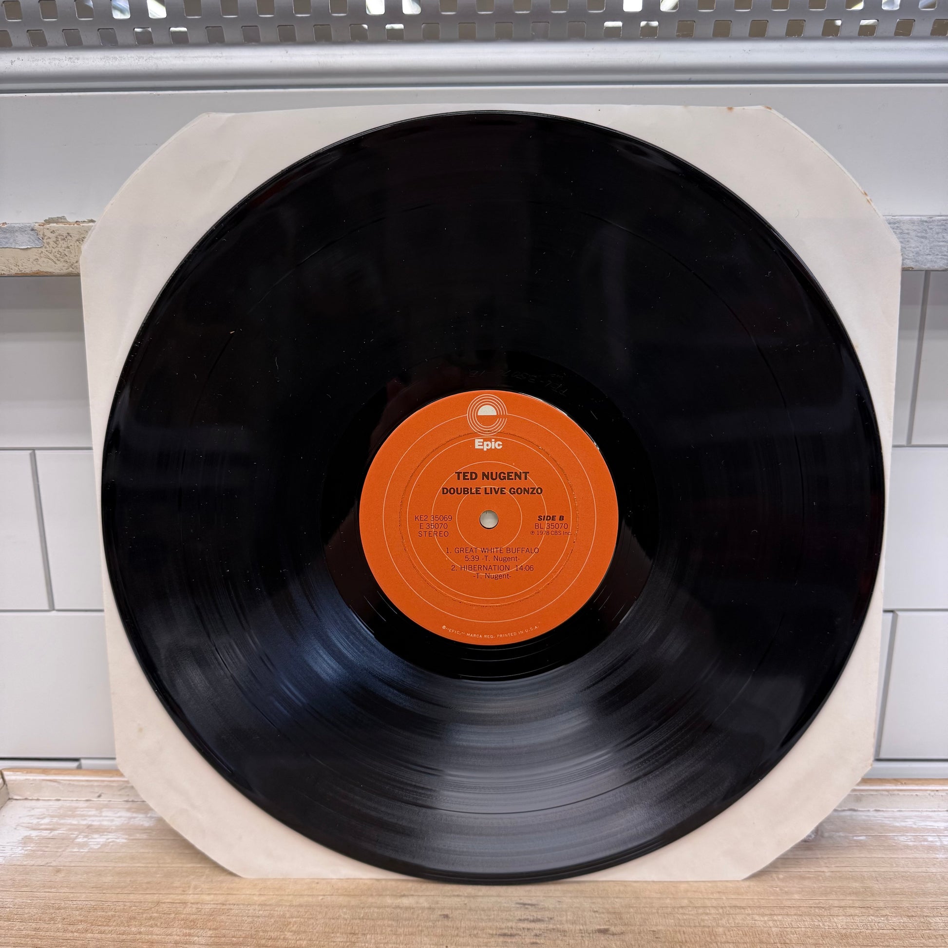 Ted Nugent Double Live Gonzo! double vinyl record released in 1978 on Epic Records, a high-energy live album that captures the raw intensity of Nugent’s late-1970s arena rock performances at their peak. Featuring standout tracks like “Cat Scratch Fever,” “Great White Buffalo,” and extended guitar-driven jams, this double LP is widely regarded as one of the defining live hard rock albums of the era. Pressed on standard black vinyl and housed in its original gatefold sleeve, this release reflects the bold, unapologetic sound that made Ted Nugent a staple of classic rock radio and vinyl collections. A must-have for fans of 1970s hard rock, live recordings, and vintage Epic Records pressings. Good vintage condition, minor wear consistent with age and use.