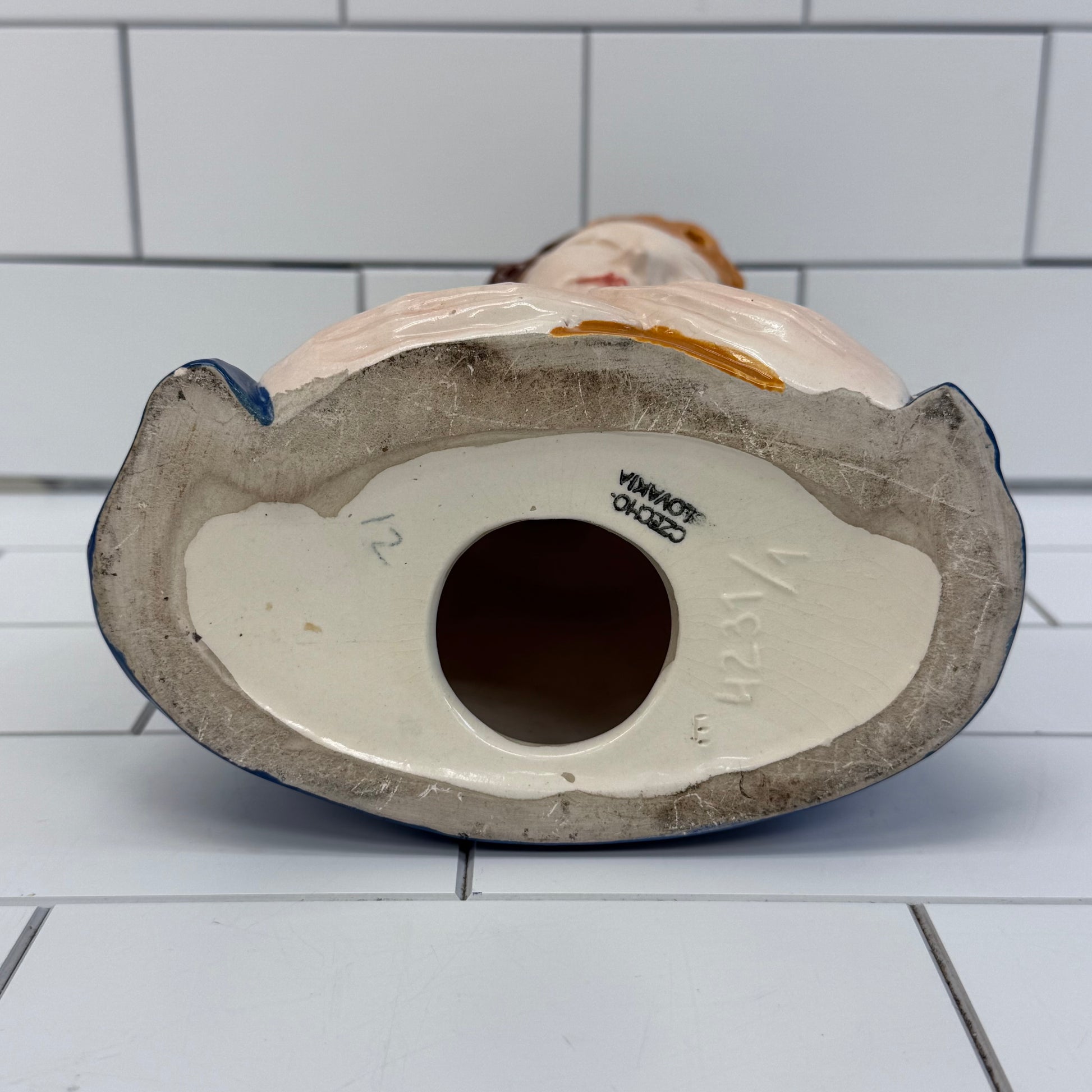 Bring a sense of serenity and timeless devotion to your home with this Virgin Mary and Jesus Porcelain Figurine, a beautifully crafted piece marked Made in Czechoslovakia and numbered #4231/1 on the underside. The graceful lines and gentle expressions capture classic European artistry, making it a meaningful addition to sacred spaces, curio cabinets, or vintage porcelain collections. In good vintage condition with minor wear consistent with age and use, this elegant figurine measures 7”x4”x10” and offers both spiritual presence and decorative refinement.