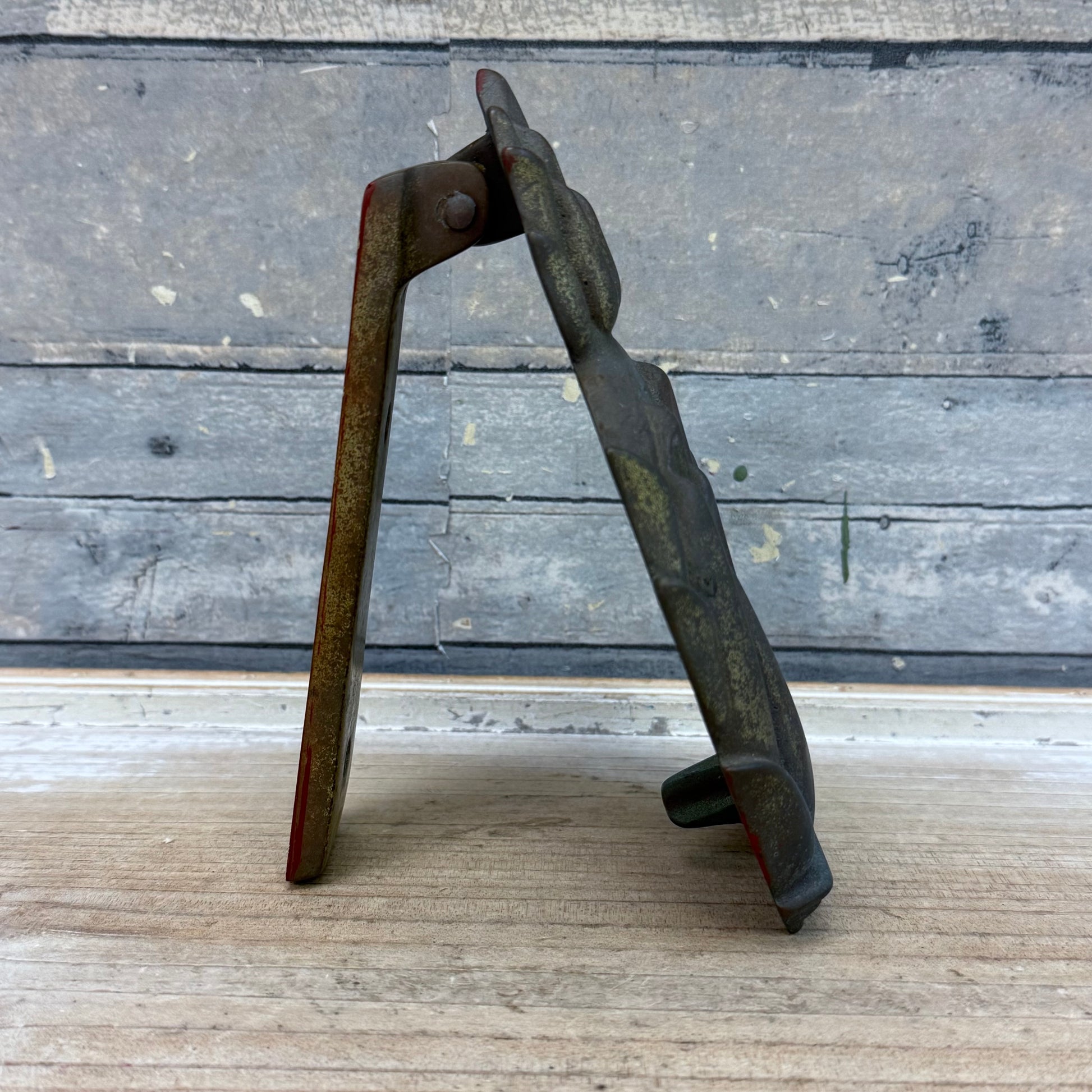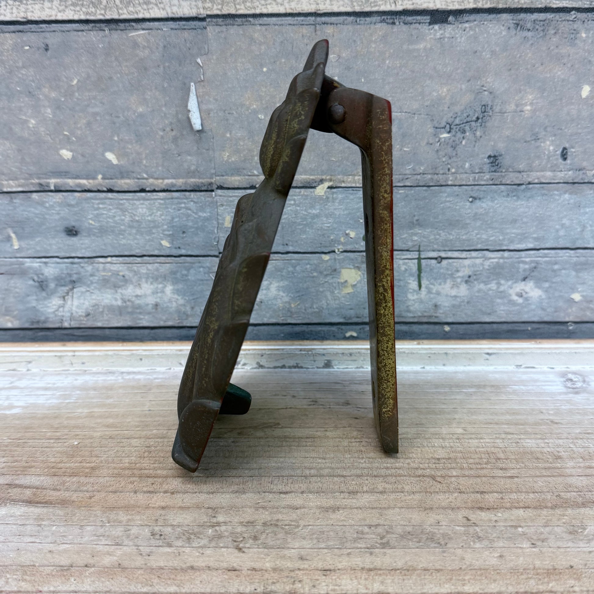 Welcome guests in classic style with this Virginia Metalcrafters Brass Pineapple Door Knocker, #4022. Expertly crafted from solid brass, this charming knocker features the iconic pineapple motif, symbolizing warmth and hospitality. The piece shows good vintage condition, with minor wear consistent with age and use, and bears the maker’s mark on the backside for authenticity. Durable and decorative, it’s a standout addition to any front door or home entryway, blending timeless elegance with functional design.
