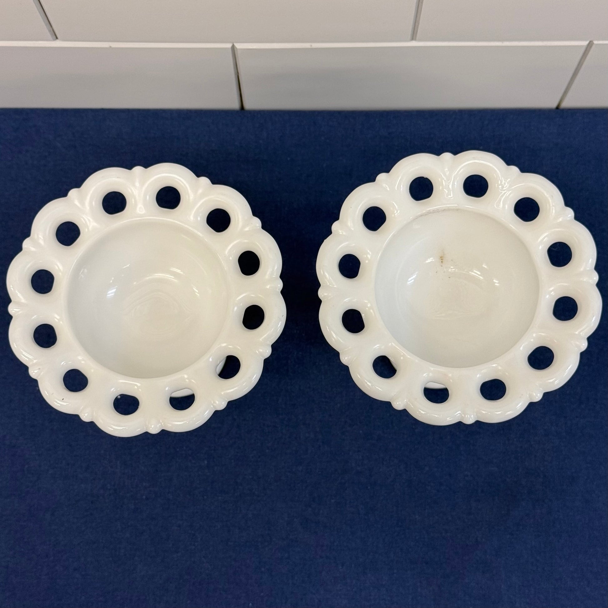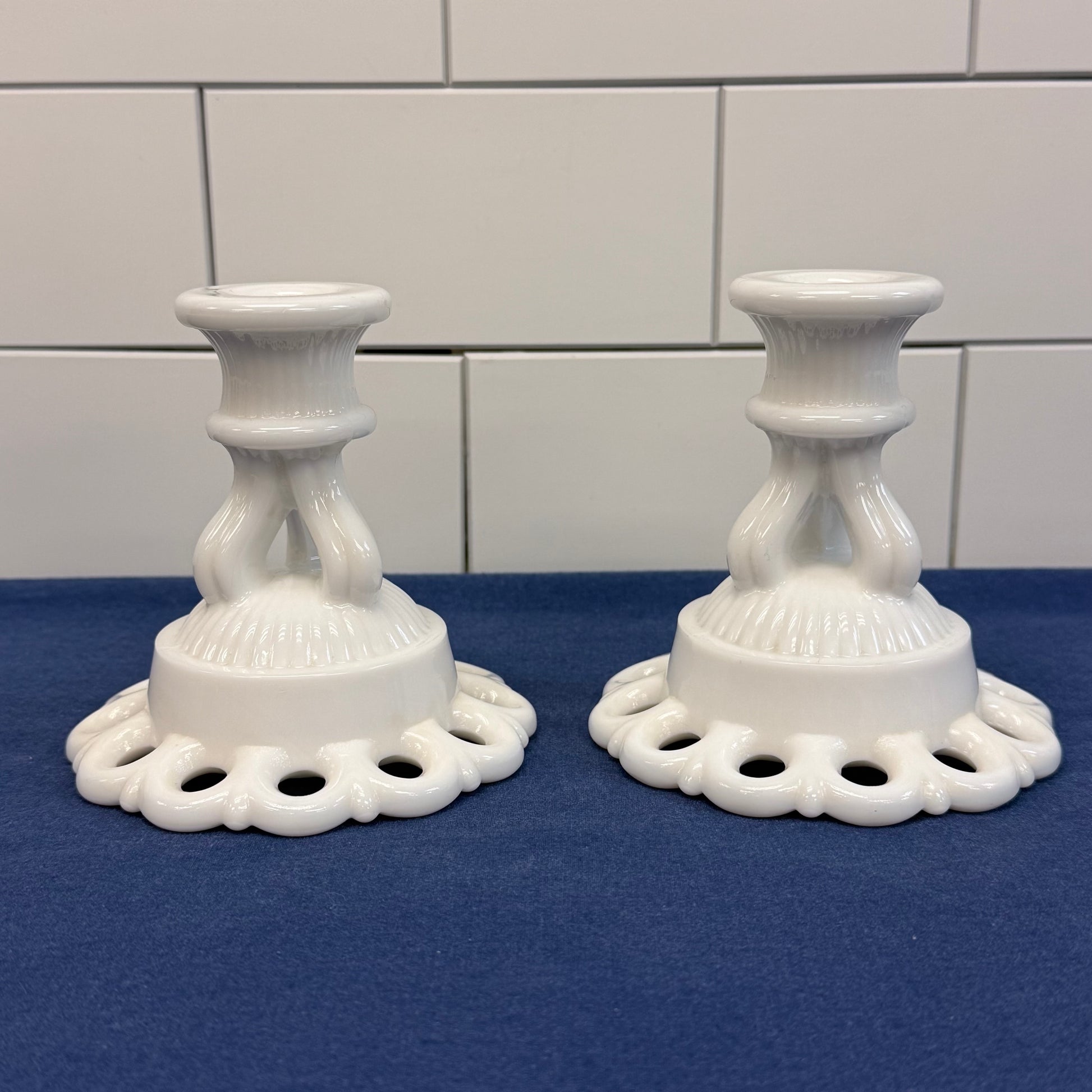 Westmoreland Doric Lace Candlestick Holders, Milk Glass