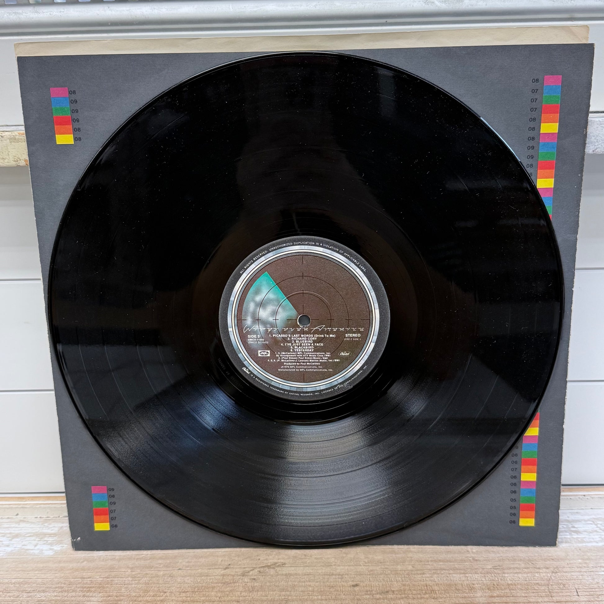Keywords: Wings Over America, Paul McCartney, live album, 1976 vinyl, Capitol Records, triple LP, Beatles memorabilia, classic rock, vintage record, SWCO-11593